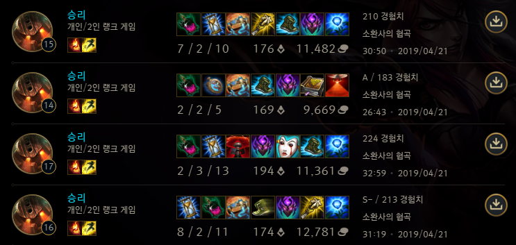 연승했지만 안절부절못하면 피곤한게 있어서 여기까지 하고 쉬었어.