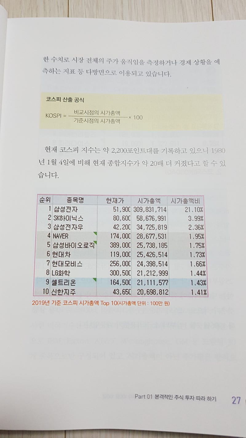 #코스피 산출 공식이 저렇게 나온대요. 그리고 그 밑에 2019년 기준 코스피 시가총액표도 나와 있는데 현재 코스피 시가와 비교하면 재미있네요. #삼성전자는 지금보다 오히려 조금 낮은 편이네요. (4월 21일 오전 10:41분 현재가 49,550원) 그리고 요즘 바이오주가 주류라서 그런지 #삼바는 2019년 389,000원에서 현재 576,000원. 존버한다고 꼭 좋은 것만은 아닌 것 같습니다. 올라갈만한 종목으로 존속해야겠죠? 저점에 사시면 적당한 금액에 파는 습관. 욕심내지 마!