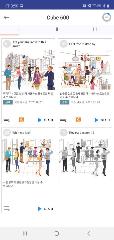 수업 이틀 전 큐브 600 앱으로 미리 예습을 했는데 저만큼(Limelight)까지 해서 잊어버려서 다시 버스 안에서 공부했어요.