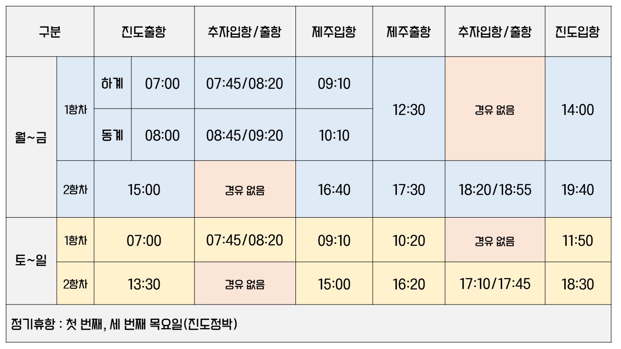 제주도 진도-제주도 배편은 하루에 오전, 오후 두 번 출항합니다.