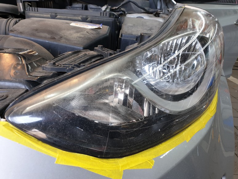 좀 더 자세히 살펴보겠습니다. 약간의 균열과 고착물과 변색되어 있군요.자동차 운행을 오래 계속하면 아래와 같이 라이트가 변색됩니다.이것은 세차로는 깨끗해지지 않습니다.