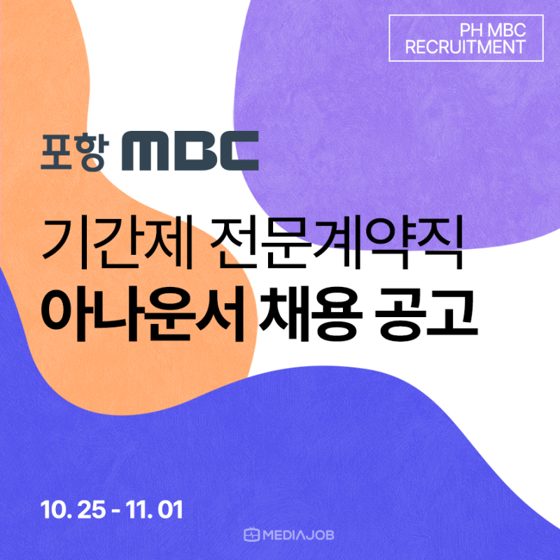 모집분야 인원기간제 전문계약직 1차 전형 2차 종합전형 아나운서(기간제 전문계약직) 0명 ~ 11월 01일(화) 11월 05일(토) 서류 및 동영상 심사(마감일 17시까지 접수) 실기 및 카메라 테스트(10:30-12:00) 심층면접(13:30-15:00) 최종 임원면접(15:00-)