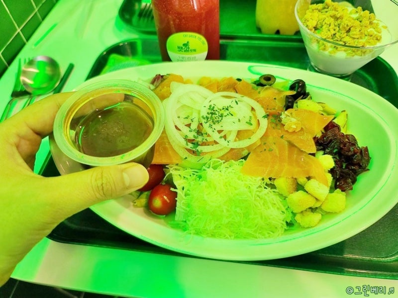 너무 맛있었어요. (병아리콩 따는 걸 깜빡했어요.) (웃음) 소스는 바질올리브로 했어요.굿 배고픈데 딱 적당할 정도로 양도 딱 좋았어요.불당동이라 잘 안나오는 동네라 아쉽지만 샐러드 먹고싶을때 시간되면 산책겸 와서 먹으려고요!사장님도 너무 친절하셔서 기분좋게 먹었습니다.(웃음)