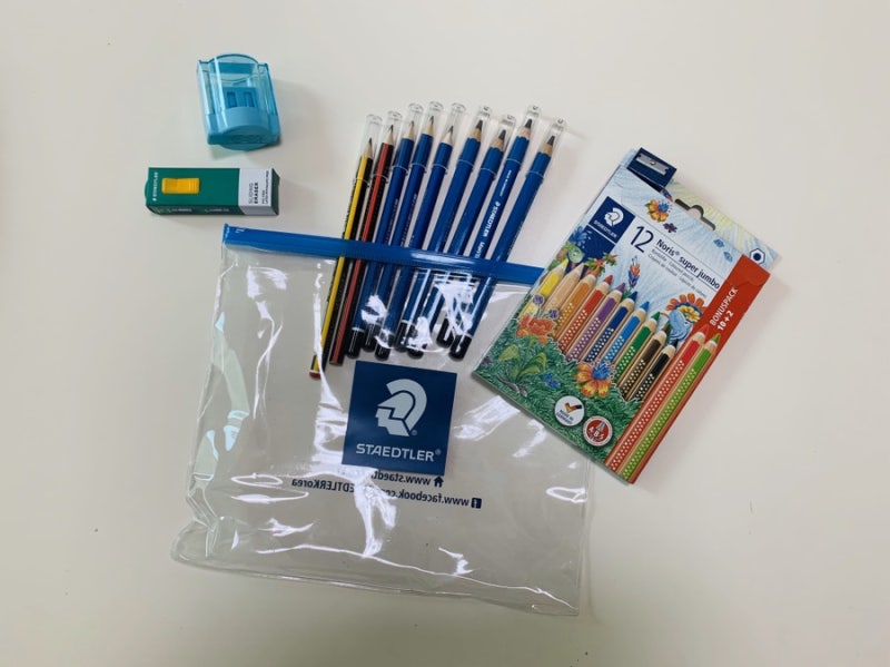 초등학교 입학선물 스테들러 어린이 연필세트!! 이거 하나 있으니까 초등학교 준비물 챙기기도 너무 쉬웠어요.문구세트 안에 연필도 HB와 2B가 다 들어있는데 초등학생 연필로는 2B를 추천하시는 분들이 많아서 그걸로 가져왔어요~!