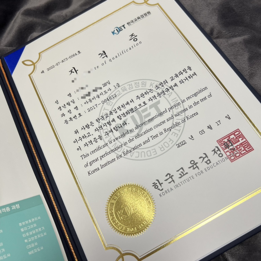 취득 리뷰, 무료 수강 추천 코드 한국교육검정원 아동미술지도사 자격 무료