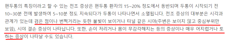 단, 개인별로는 편두통을 유발하는 특정 상황이 있을 수 있으나,