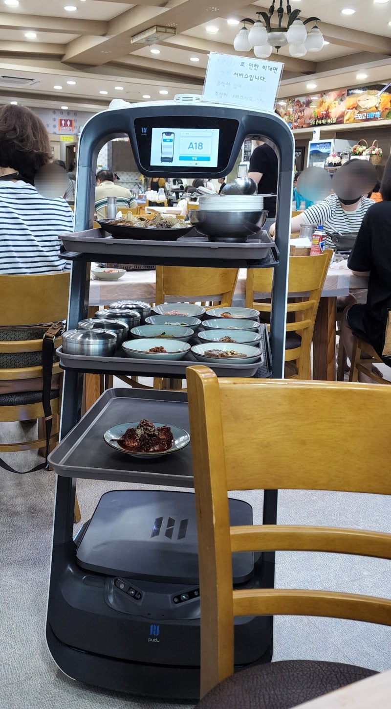 반찬과 메인 요리를 가져다주는 무인 로봇 시스템이 안면도에서도 등장하네요.정말 신기하게도 안쪽 테이블까지 배달해주는 로봇이 신기했습니다.