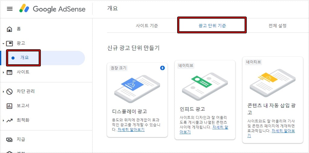 티스토리 애드센스 상단에 삼선을 클릭하면 여러 메뉴가 생성됩니다 – 여기서 광고를 클릭합니다.