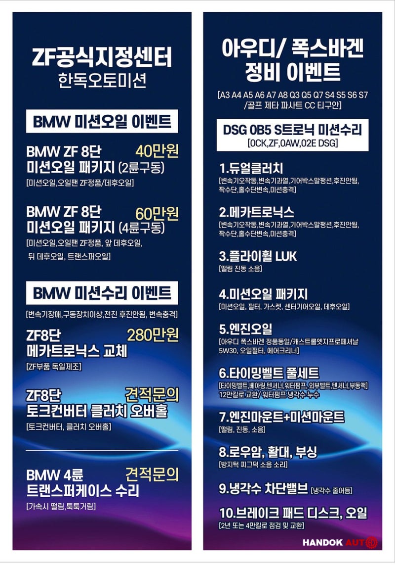 파사트 변속기 듀얼 클러치 분해 파사트 dsg 습식 6단 변속기입니다.10만km 이상 주행하면 고장 현상이 발생할 수 있고 폭스바겐 변속기 고장 현상은?(골프 제타 파사트cc 티구안과 같다) 1. 후진이 안 된다(언덕길 후진이 안 된다) 2. 파킹이나 중립으로 변속 후 똑딱 소리가 발생한다.3. 스패너형 경고등이 계기판에 점멸합니다.4. 짝수단 또는 기수단 변속만 된다.5. 전진변속이 안 되고 2단 이상 변속이 안 된다. 6. 엔진과 미션에서 소음진동음이 크게 발생한다.폭스바겐 변속기의 수리 견적은?한독오토에 방문하시면 무상점검 무상견적상담을 차량진단 후 가능합니다.폭스바겐 변속기 수리 시간은?듀얼클러치, 플라이휠 작업의 경우 당일입고 출고 가능하며 메카트로닉스의 경우 정품은 독일 주문 2-3주 소요됩니다.