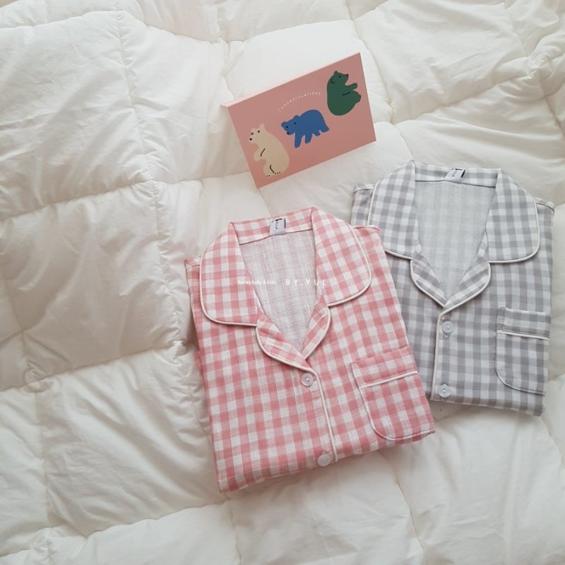 갑자기 여름이 지나고 나서 키가 쑥쑥 – 커서 기존 실내복이 다 작아져서 이번 기회에 패밀리룩으로도 입으면 예쁜 유아 민트 체크 잠옷을 주문해봤어요.