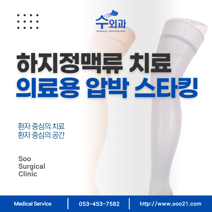 일단 가장 중요한 부분이 발목부터 종아리 부분까지인데 발등이 없는 건 단순한 서포터 역할을 할 뿐입니다.1.먼저 발목까지 착용한 후 발뒤꿈치를 잘 맞추고 발목부터 무릎 바로 위까지 최대한 당겨 착용합니다. 이렇게 해야 종아리에도 압력도 제대로 가고 허벅지 중간까지 스타킹이 올라가는 일이 없기 때문입니다.2. 발가락 부분은 편안하게 조절하시고 허벅지 중간 지점까지는 가급적 당겨 신으세요.3. 무릎 위까지는 최대한 당겨 착용했을 경우 허벅지 부분은 조금 여유있게 풀어주세요. 단, 다리 길이가 긴 분들은 제품 자체가 약간 짧을 수 있습니다.4. 허벅지 타입 제품의 경우 활동 중 흘러내리는 경우가 많아 수시로 다시 올리는 것 외에는 방법이 없습니다. 이것은 제품이 커서 흘러내리는 것이 아니라 사타구니에 압력이 너무 가해지지 않도록 느슨하게 만들어졌기 때문입니다.2016년 10월부터 정맥질환 예방 및 치료 목적의 제품은 ‘건강보험 적용 대상’이 되었습니다.전문의 진료 후 처방을 받게 되면 검증된 좋은 제품을 보다 경제적인 비용으로 구입할 수 있는 좋은 기회라고 할 수 있습니다.만약 의심되면 전문의에게 정확한 진찰을 받으십시오.하지 정맥류, 하지 정맥류, 하지 정맥류 초기 증상, 강남 하지 정맥류 수술, 증상 치료, 병원, 수술 후기 포이즌 흉부 외과, 흉부 외과 전문의의 빵·동규 원장, 하지 정맥류 병원 포이즌 흉부 외과 하지 정맥류의 치료는 유행이 아닙니다. 경험과 실력이에요. Care of varicose vein is not trend, must experience and skill 1하지정맥류란?정맥에 존재하는 판막 부전 및 혈관 확장 등의 이유로 정맥혈이 정상 방향으로 흘러가지 못하고 역류되어 나타나는 혹이 하기로 Read more하지 정맥류 진단법!하지 정맥류 초기의 경우는 간단한 신체 검사만으로도 가능하지만, 자각 증상을 동반할 경우에는 진단 장비를 이용한 검사를 실시하게 됩니다. Read more POISO…veinclinic.co.kr하지정맥류, 하지정맥류, 하지정맥류 초기증상, 강남하지정맥류 수술, 증상, 치료, 병원, 수술후기, 포이즌흉부외과, 흉부외과 전문의 방동규 원장, 하지정맥류병원 포이즌흉부외과 하지정맥류 치료는 유행이 아닙니다. 경험과 실력입니다. Care of varicose vein is not trend, must experience and skill 1 하지정맥? 정맥에 존재하는 판막부전 및 혈관확장 등의 이유로 정맥혈이 정상방향으로 흐르지 못하고 역류하여 나타나는 혹을 말하며… Readmore 하지정맥류 진단법! 하지정맥류 초기의 경우 간단한 신체검사만으로도 가능하나 자각증상이 동반될 경우 진단장비를 이용한 검사를 실시하게 됩니다. Read more POISO…veinclinic.co.kr포이즌의원 서울특별시 강남구 삼성로 571 경산빌딩포이즌의원 서울특별시 강남구 삼성로 571 경산빌딩포이즌의원 서울특별시 강남구 삼성로 571 경산빌딩