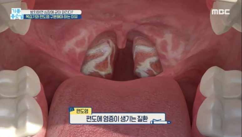 출처 – mbc편도선염 편도선염이란 편도를 구성하는 설편도, 인두편도, 구개편도 중 주로 구개편도에 발생하는 염증을 말하며 세균이나 바이러스 감염에 의하여 발생합니다.