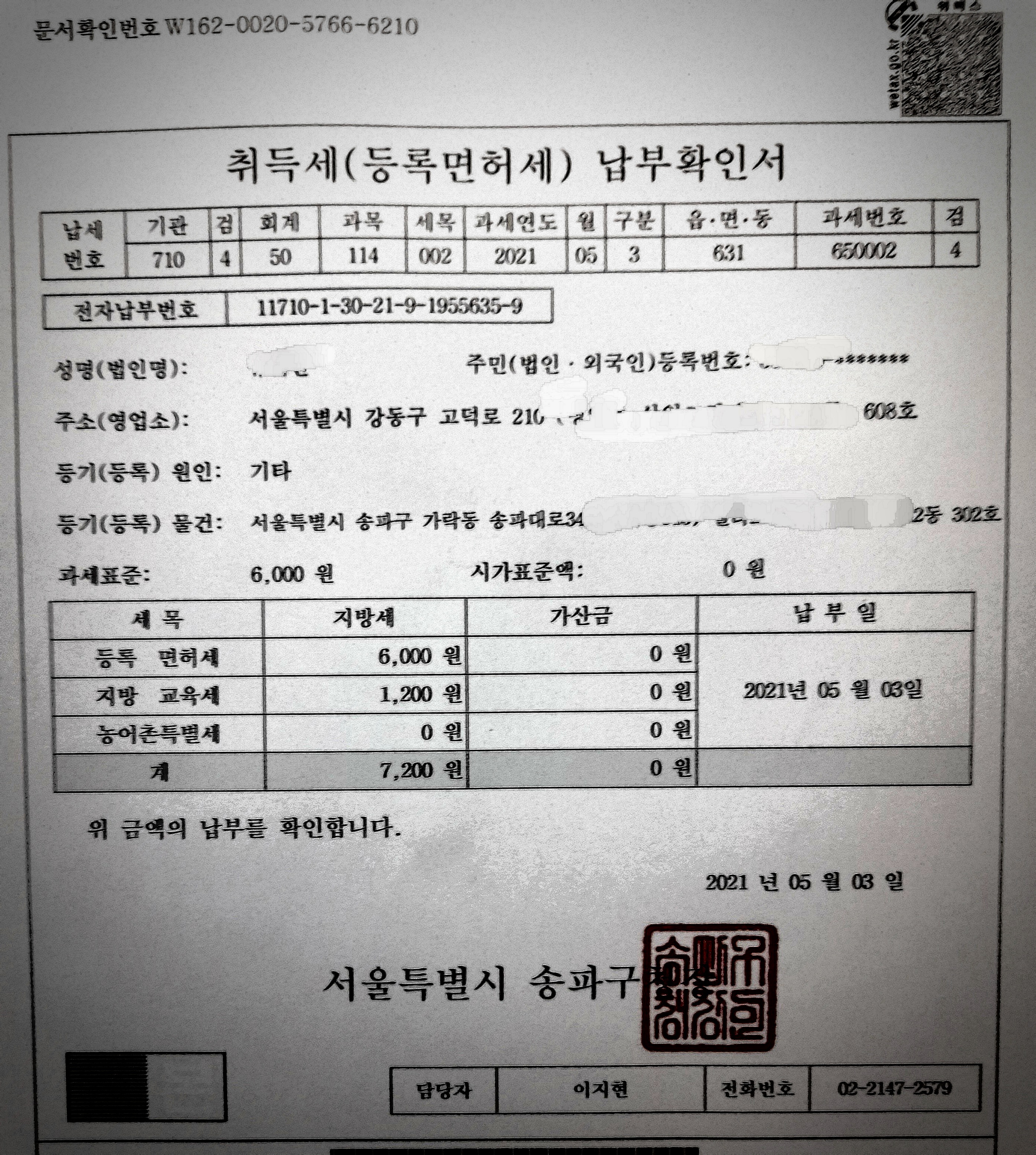 등록면허세 납부확인서 – 이것이 있어야 한다.위텍스 화면에서 로그인하지 않아도 전자납부번호만 입력하면 쉽게 인쇄된다.그리고 중요한거~~~!임대사업 등록증을 가져가야 해.나는 세무서에서 발급한 임대사업자 부가가치세 면세사업자 등록증을 가져가서 힘들어? 먹었다. (연보면) 구청에서 발급한 임대사업등록증이 필요한 서류다.