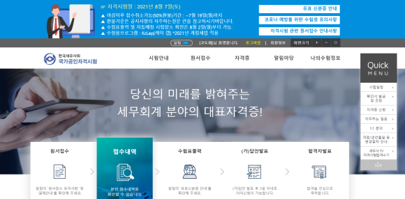 자격증 신청방법은 한국세무사회 홈페이지에 접속하여 자격증 탭클릭 > 결제 2가지 절차만 가능하다.