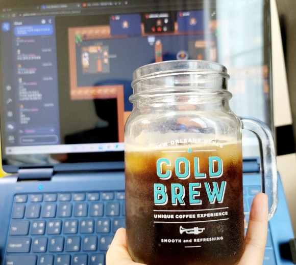 콜드브루캡슐보다는 번거로운 절차를 밟아야 비로소 맛있는 아메리카노가 되는 것은 아쉽지만 믹스커피를 마시는 것보다 훨씬 맛있기도 하고 이 뙤약볕에서 커피를 사오는 것보다는 낫기 때문에 이 정도면 만족.