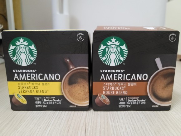 그래서 새로 캡슐커피를 주문하면서 집에서 간편하게 뽑아먹는 건 역시 아메리카노다 싶어 스타벅스 커피 캡슐 2개를 주문했다.