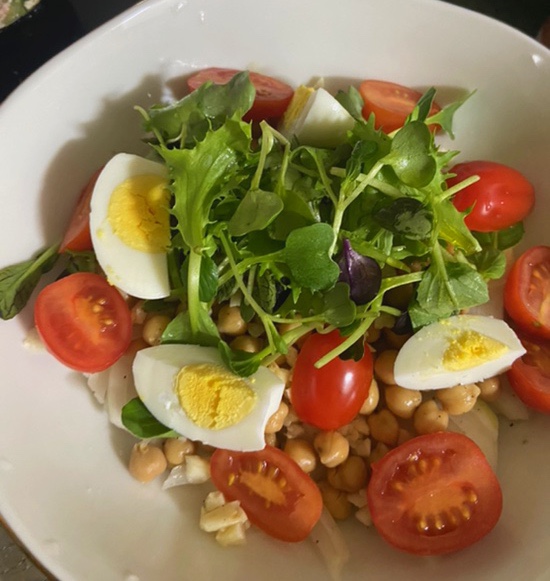 #토마토 #새싹채소 #계란 #닌니크 #병아리콩 #양파를 먹기 좋은 크기로 썰어 넣고 그 위에 새싹채소류를 올려 넣습니다:3