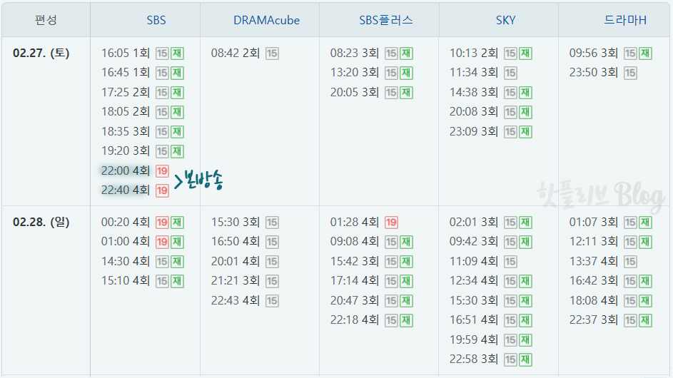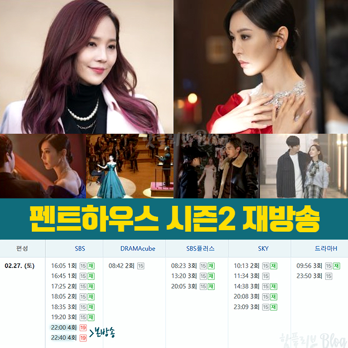 오는 28일 일요일에는 주로 3, 4화가 편성되어 펜트하우스2 재방송을 볼 수 있습니다.