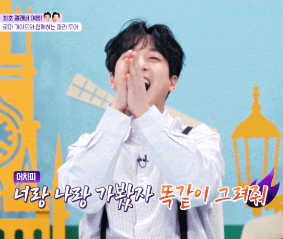네. 프랑스에 갔어요. 프랑스에 갔지. 하는 거 보세요근데 손은 왜 번쩍 들었어요?귀요미 정말…