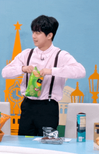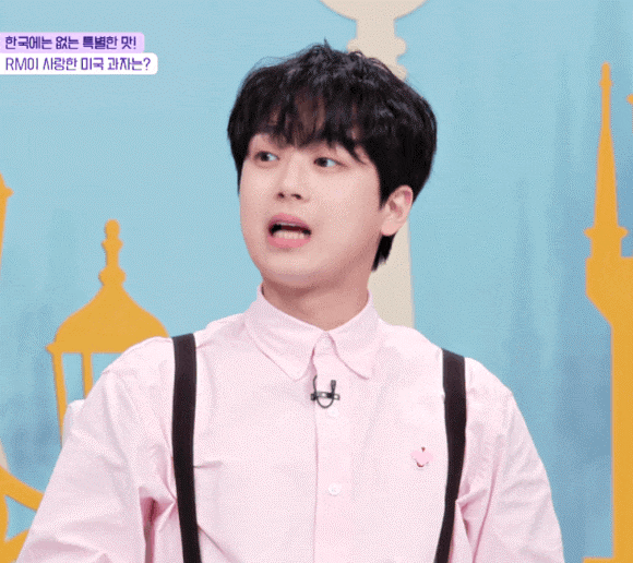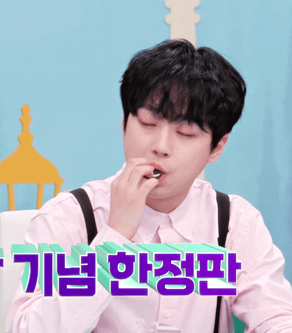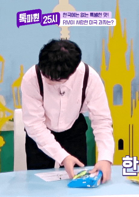 이제… rm과자를 앞에 두고… 인증하고 그리고… 먹어보겠다는 거죠카메라 토토가 잡았어요