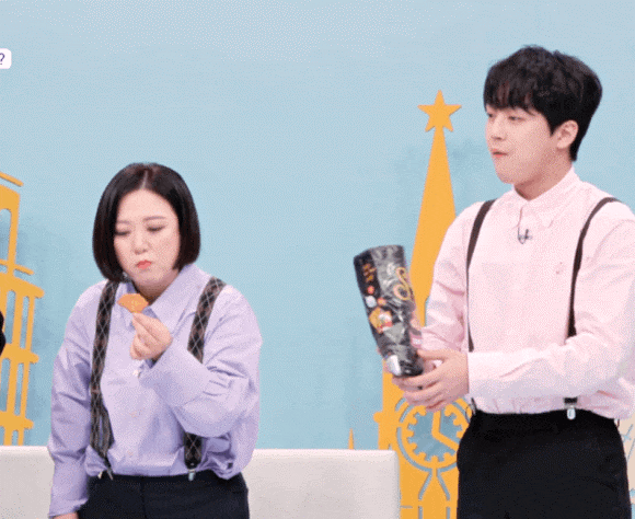 저는 굴맛 과자 먹고 있는 표정 보세요MC 오빠가… 신선하지 않은 굴 맛이라고 그랬어요