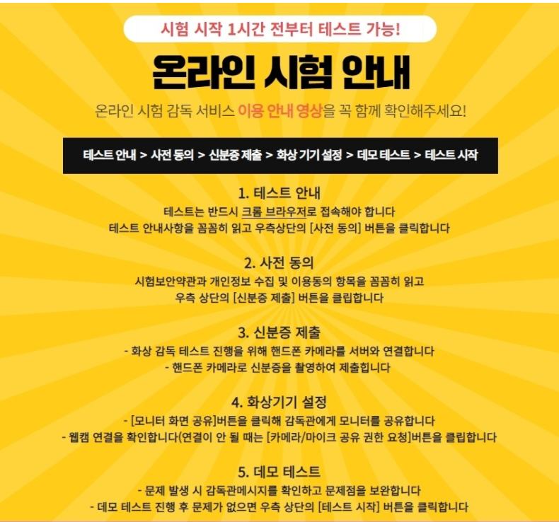 온라인에서 보는 시험이기 때문에 공정한 진행을 위해서 모니터 프로그램을 이용해서 관리한다고 합니다