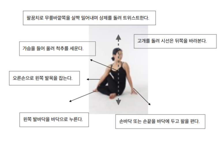 서서 하는 트위스트 자세 – 가슴을 확장한다.- 밸런스 감각과 집중력을 향상시킨다.- 요통을 누그러뜨리다