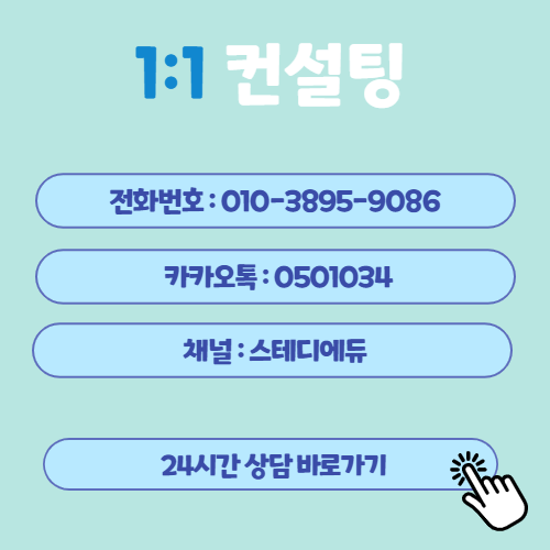 안녕하세요 교육부 정식인가교육원 소속 전문학습설계팀 스테디에듀바다 선생님입니다.